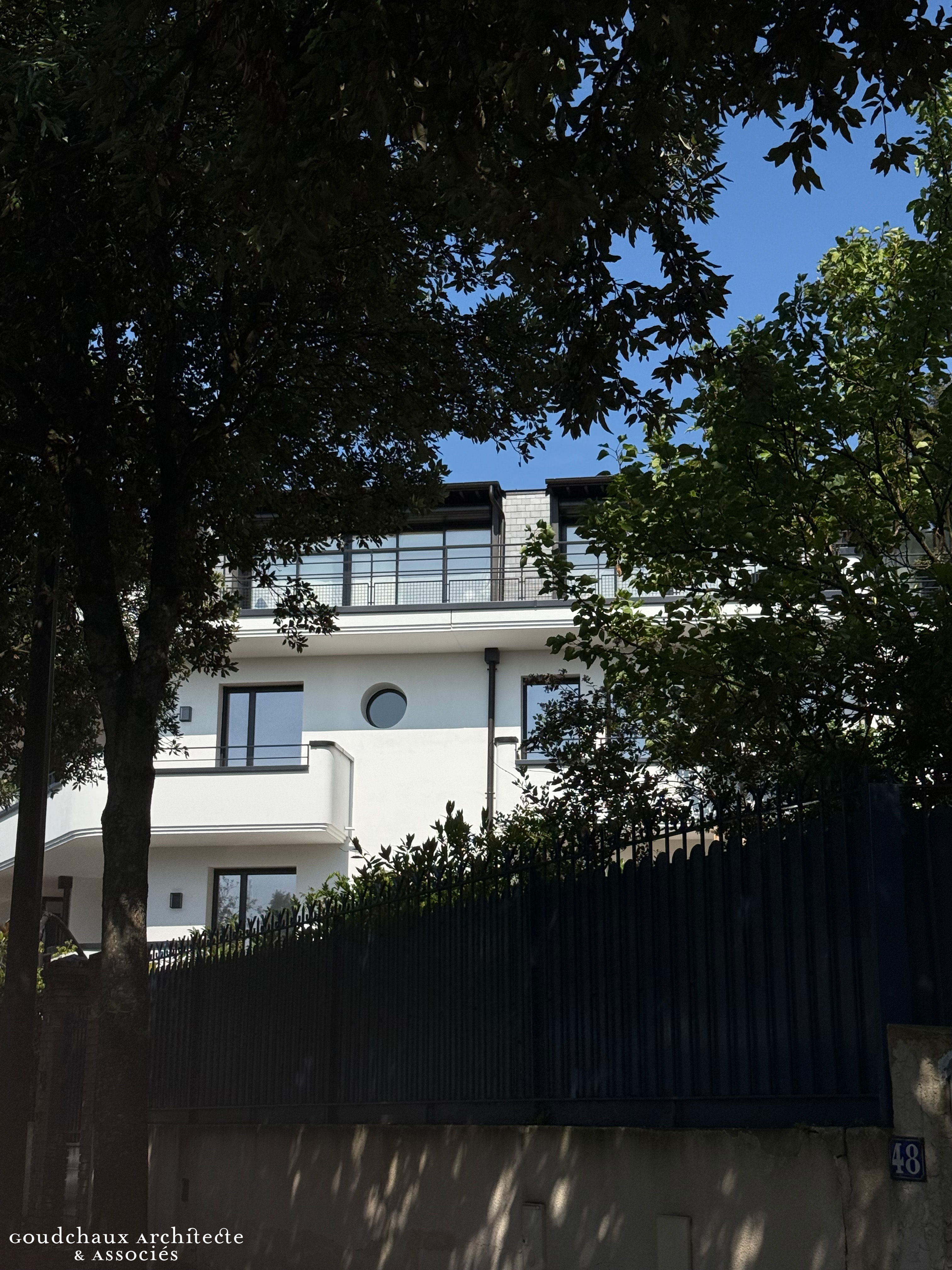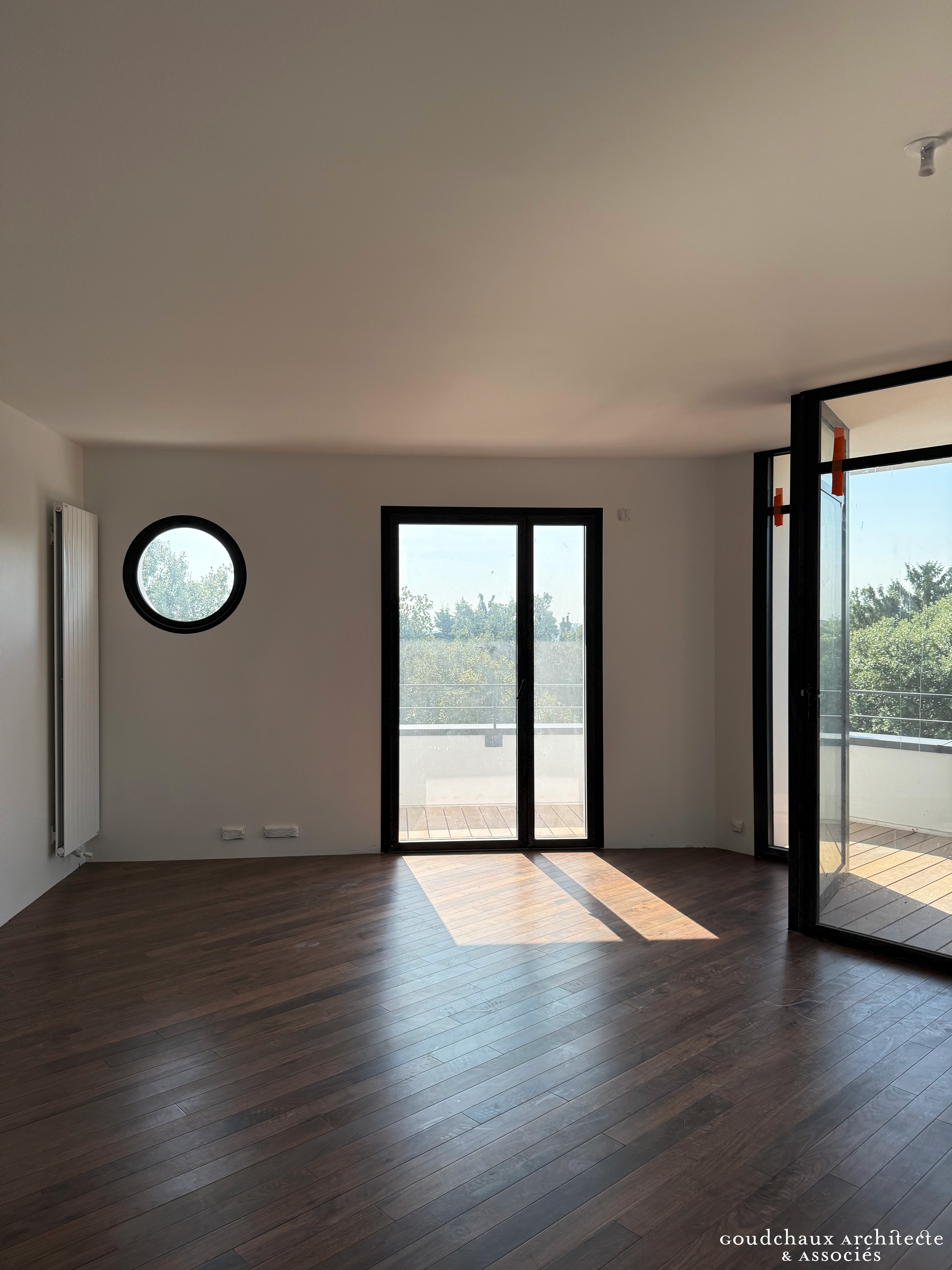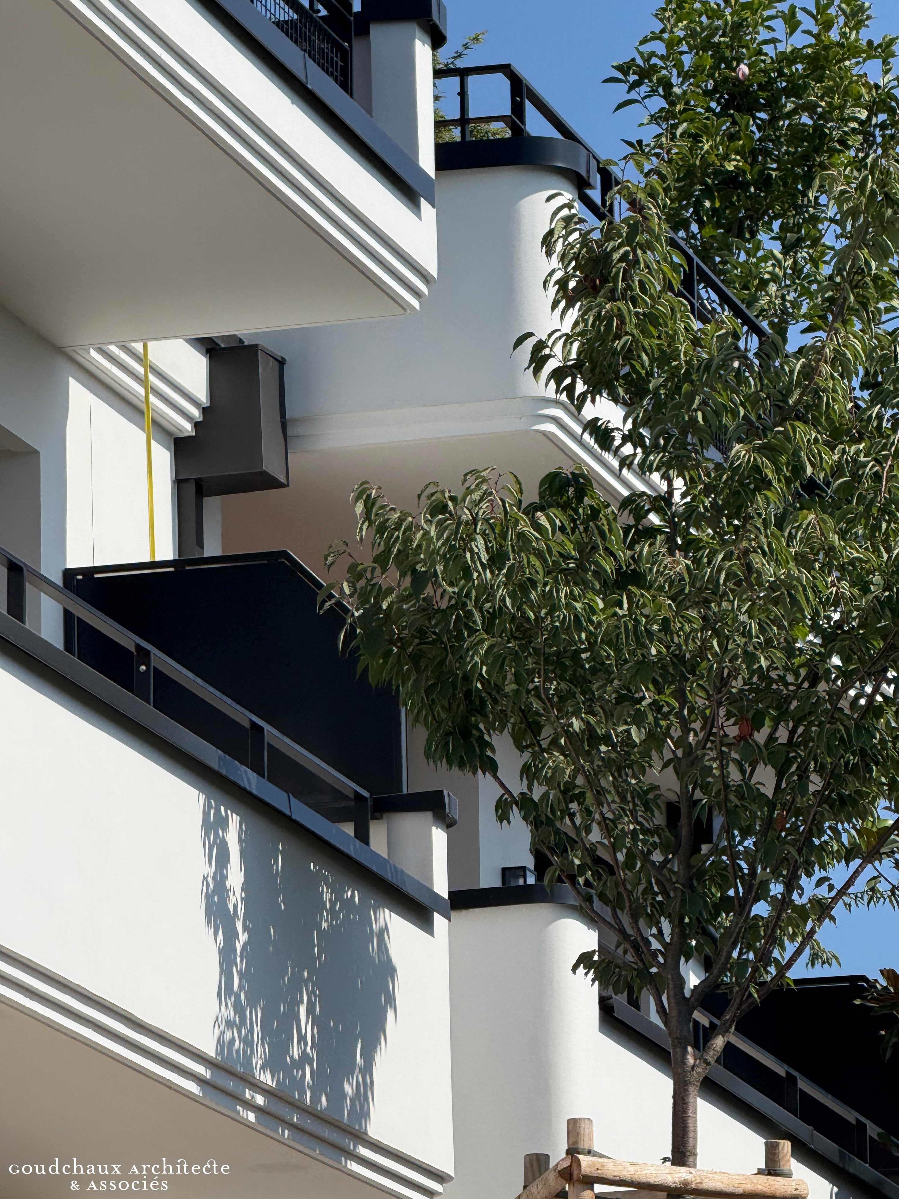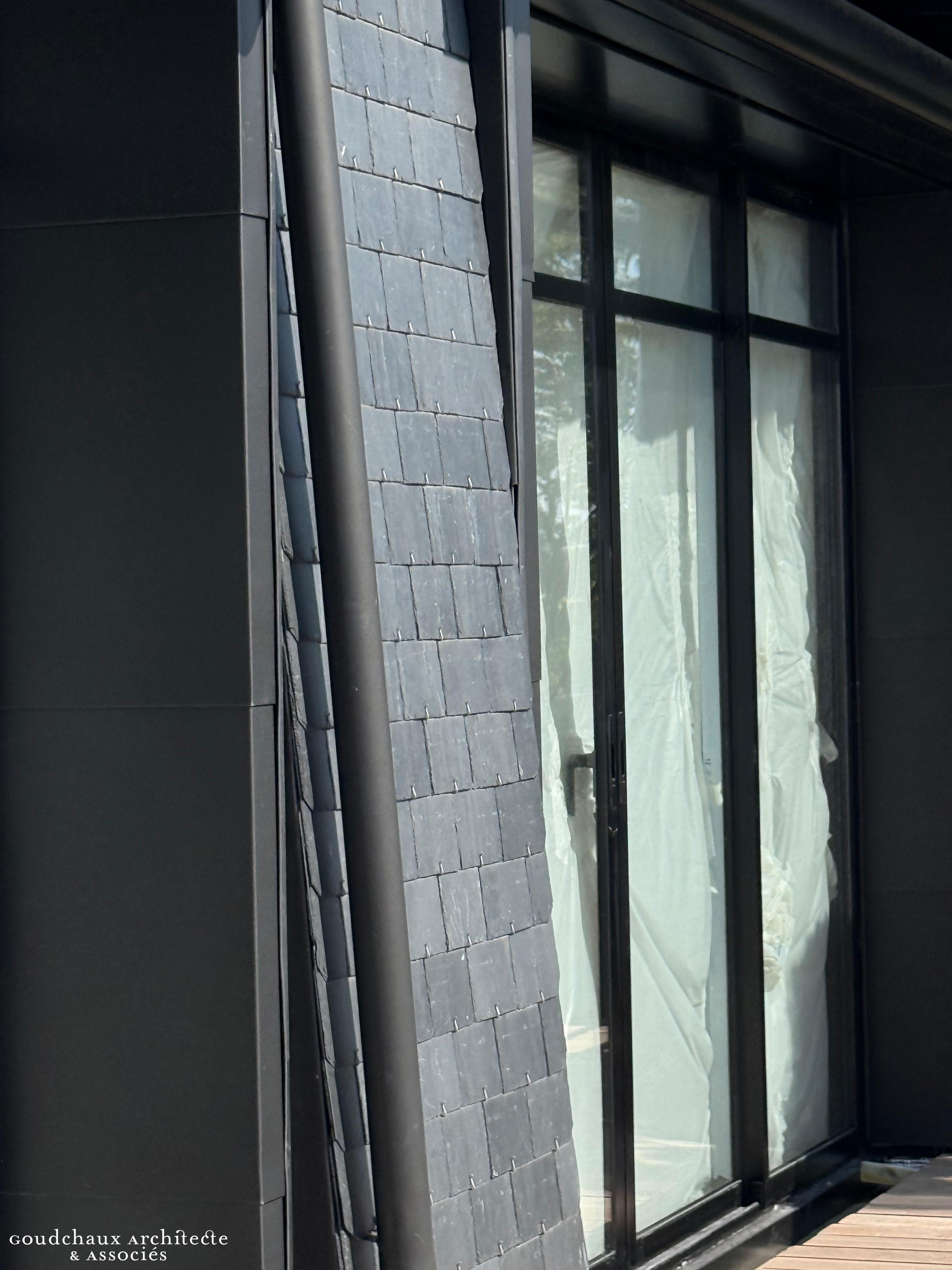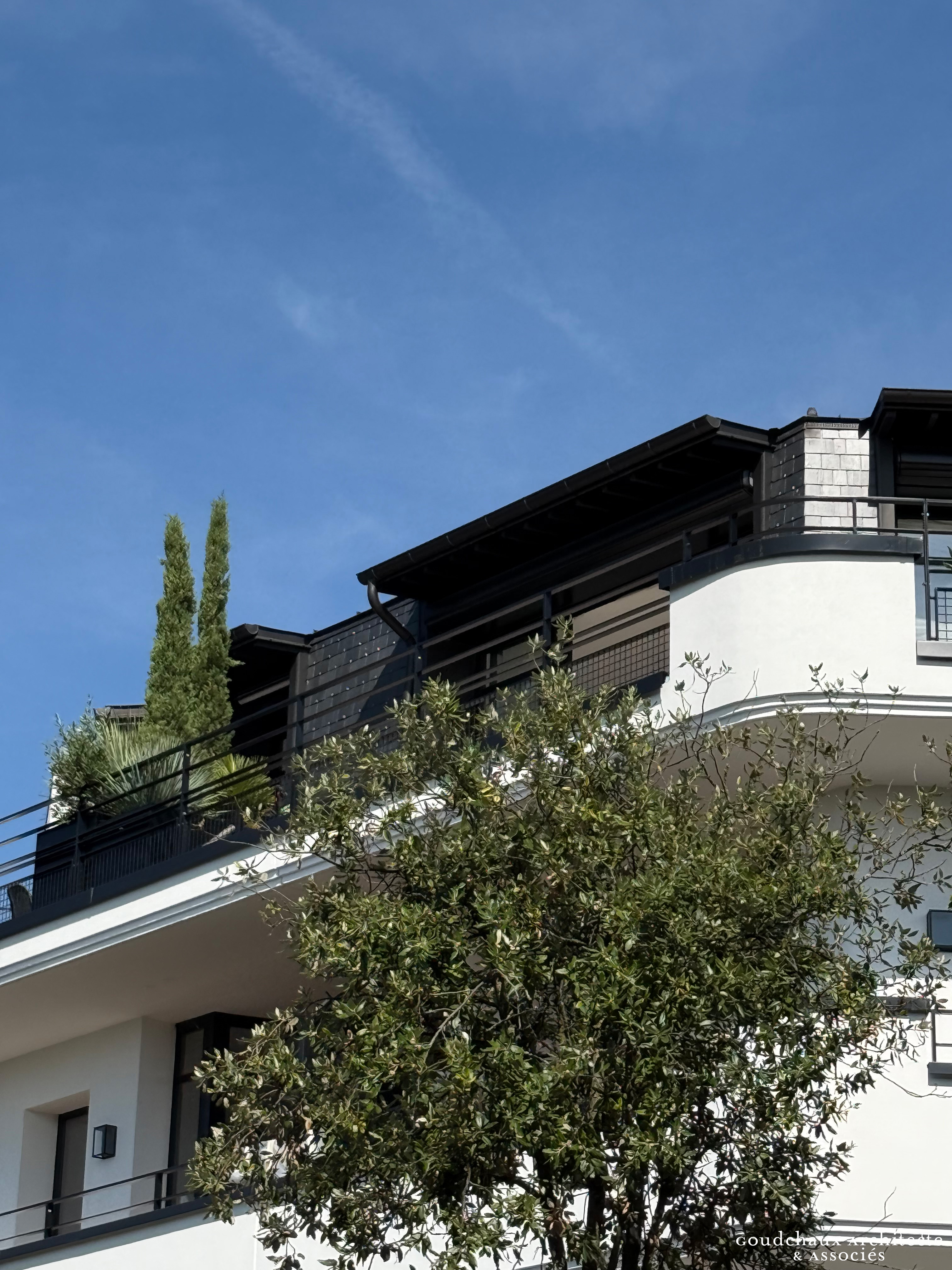Les pleins et les vides, ainsi que la finesse des menuiseries extérieures participent à l’allègement pour éviter tout effet d’aplat ou de masse.